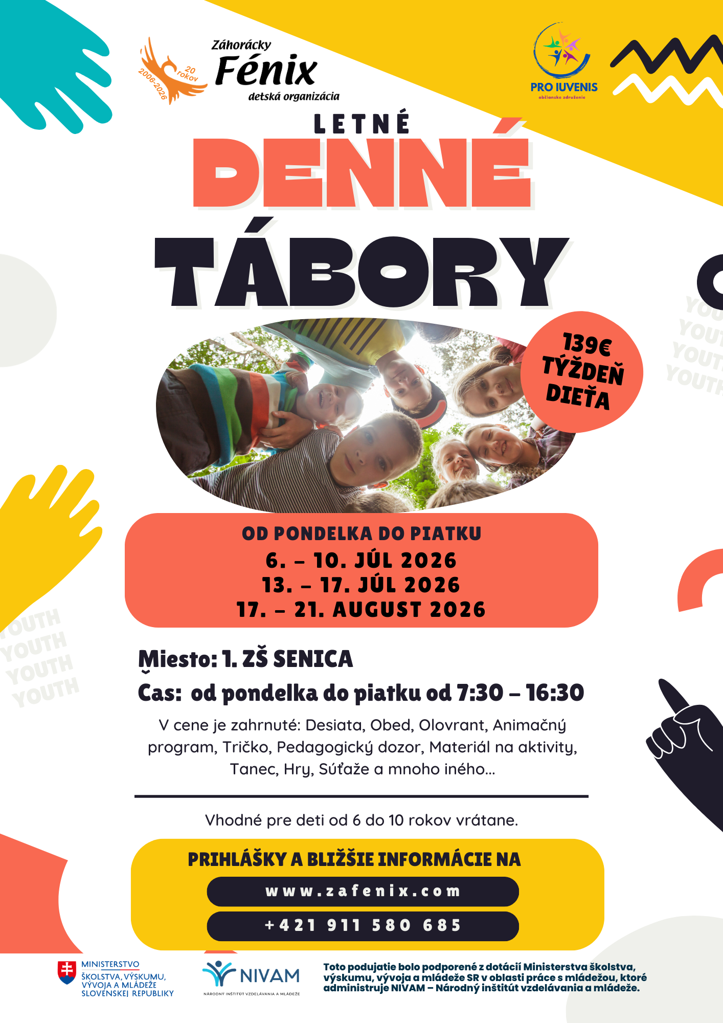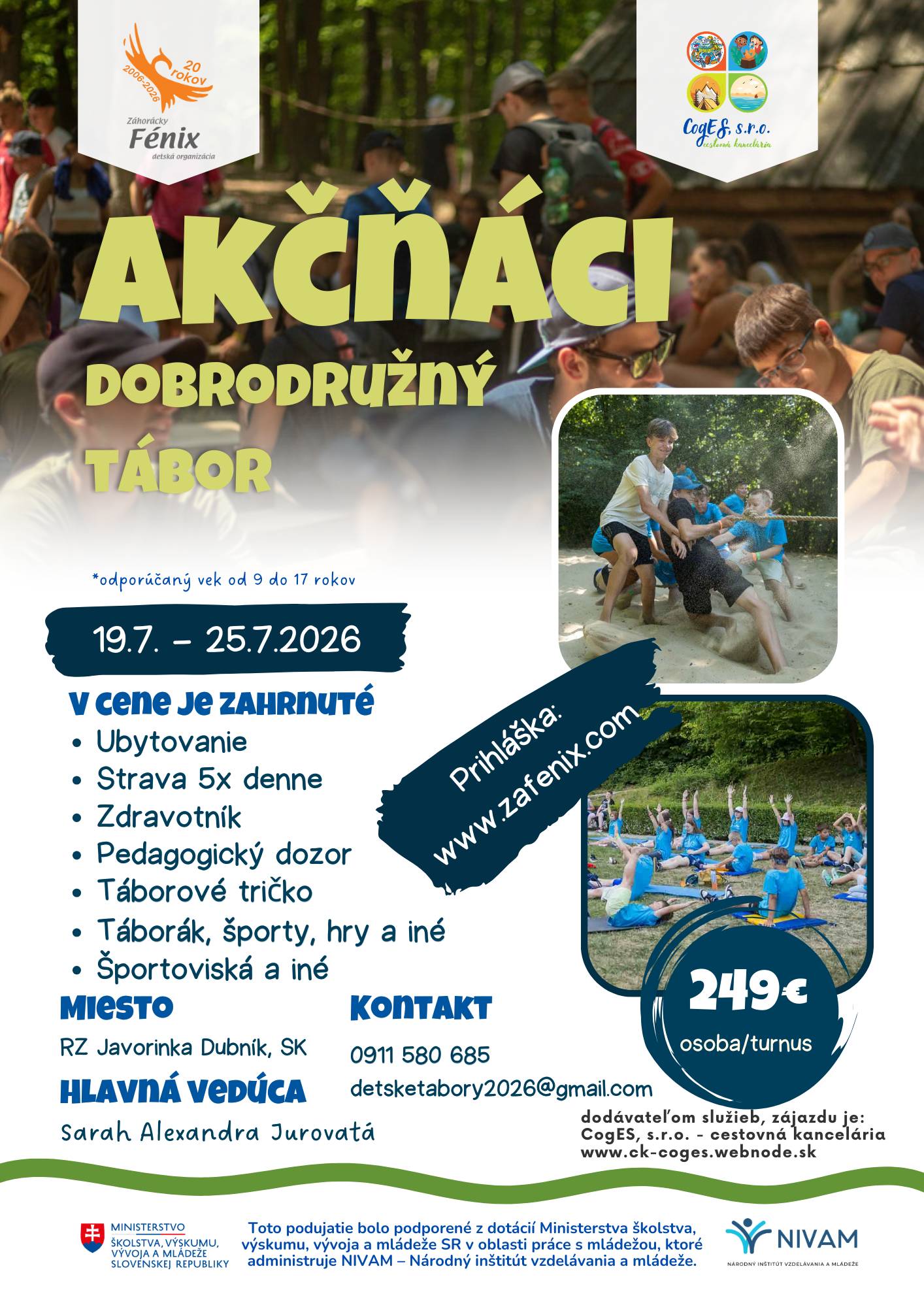 - V prípade ochorenia a prípadnej neúčasti v tábore nám prosím túto skutočnosť bezodkladne oznámte na mobil: 0911 580 685